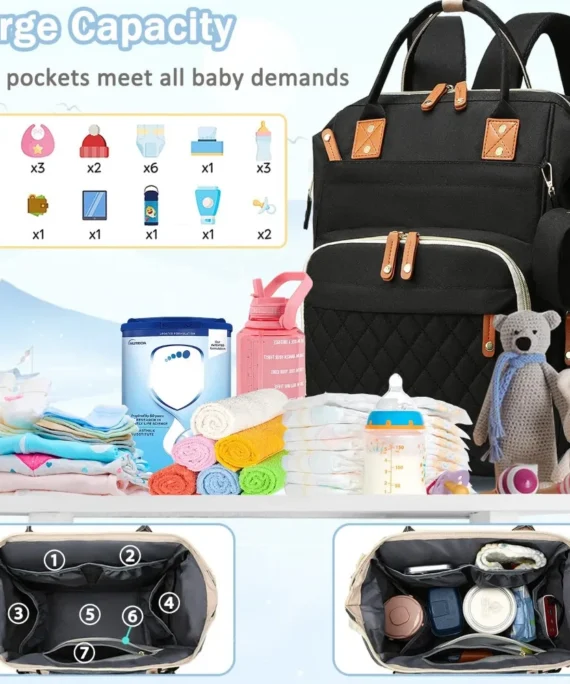 Diaper Bag Backpack Baby Essentials Travel Tote Multifunction Waterproof with Changing Station Pad Stroller Straps Big for Mommy