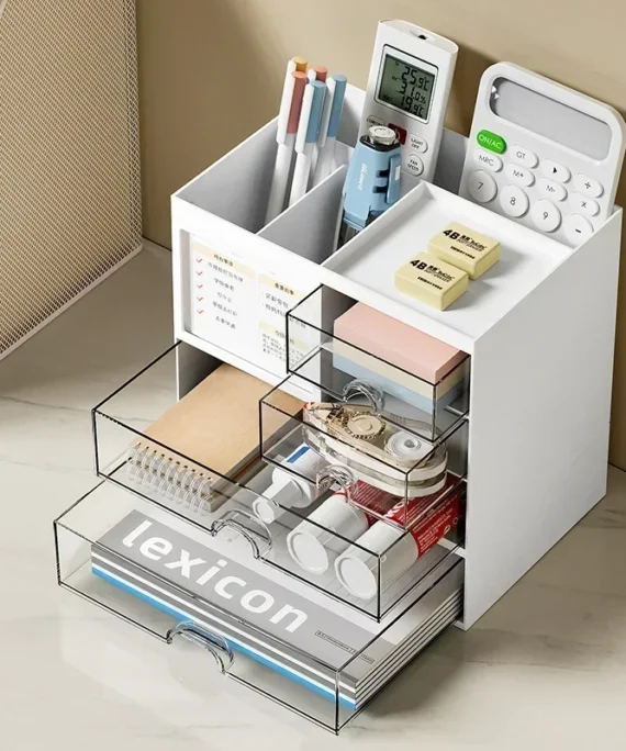 Small Desk Organizer With Drawer, Office Desktop Storage Box Makeup Organizer Business Card/Pen/Pencil/Mobile Phone/Stationery