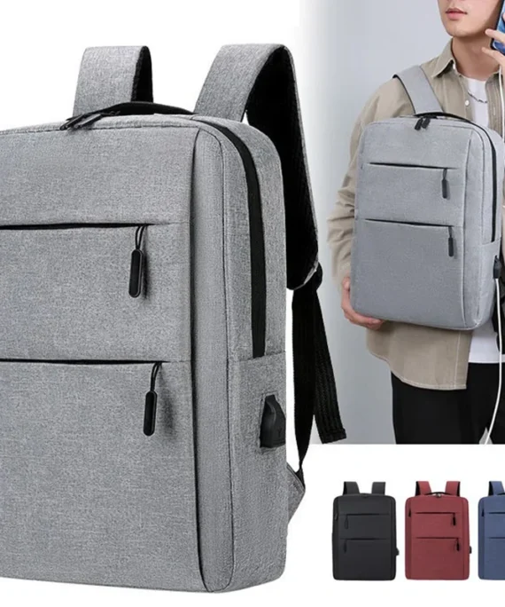 Unisex Business Casual Laptop Backpack with USB Interface Nylon Material Double Shoulder Backpack Lightweight Backpack