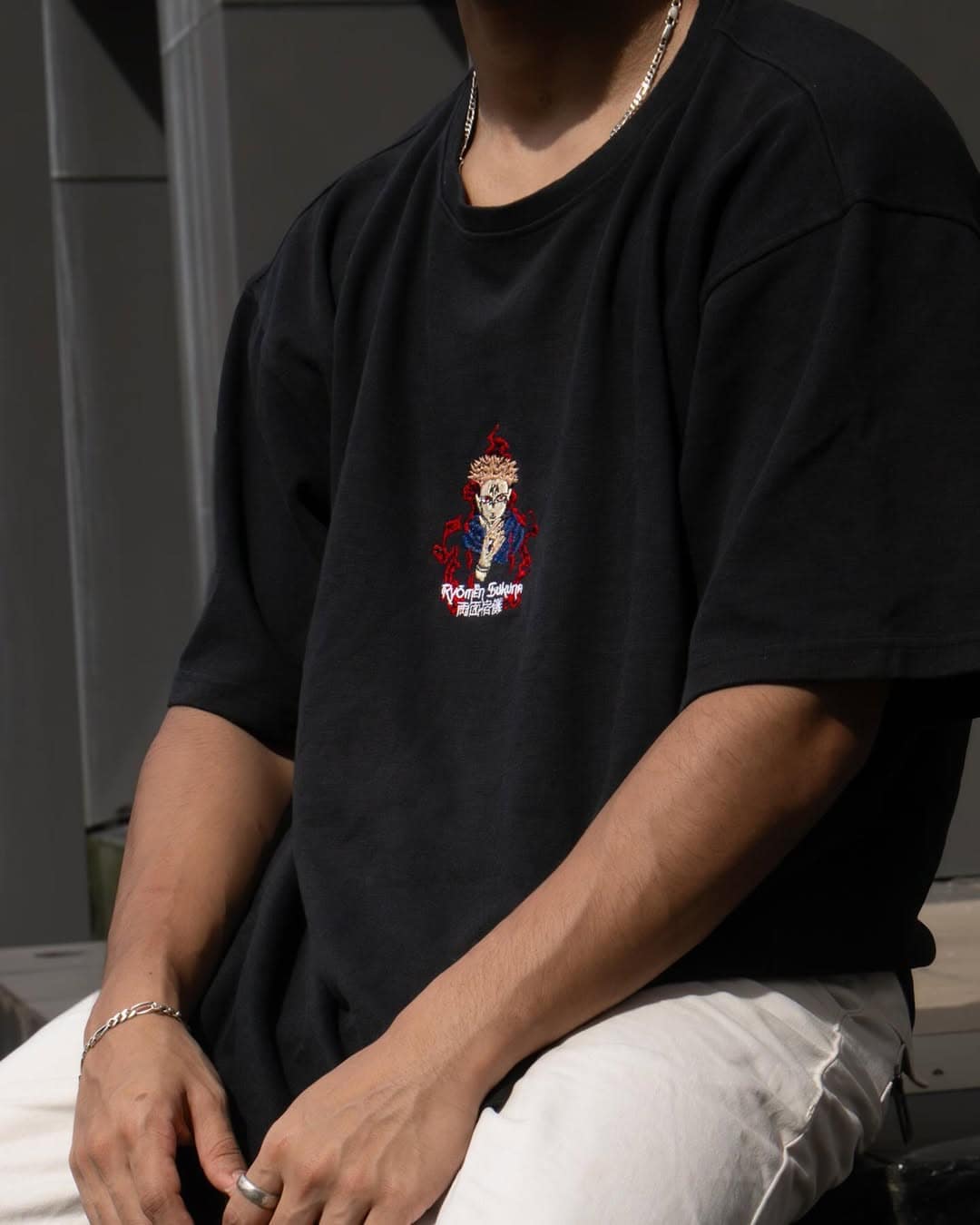 Sukuna JJK Series t-shirt. 260 GSM heavyweight cotton. Features front chest embroidery and high-quantity A3 back print.