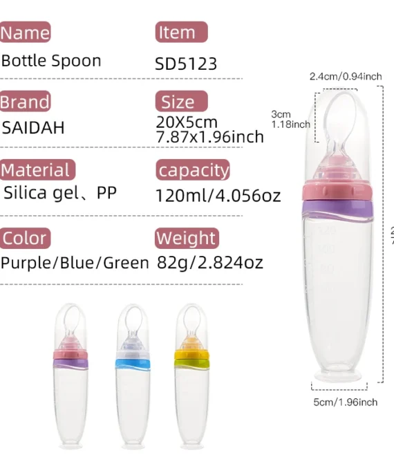 120 ml/4oz Infant Baby Liquid Silicone Food Squeeze Feeder | Fruit Puree & Rice Paste Dispenser | Detachable Spoon
