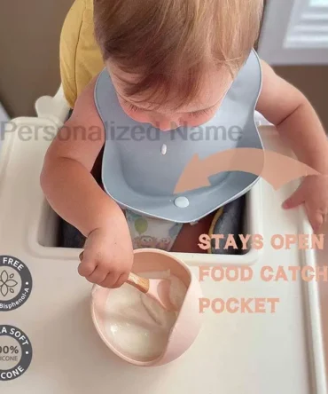 Silicone Baby Bib for Babies & Toddlers Waterproof Silicone Bibs Soft With Food Catcher Pocket for Boys & Girls Free Custom Logo